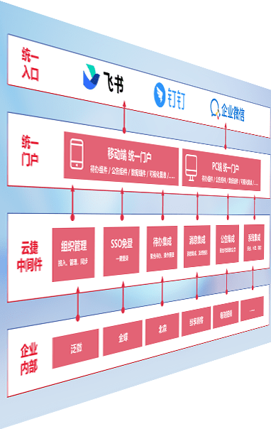 对协作平台提供支持服务,,支持企业应用与协作平台对接,,包含组织同步、、、、消息集成、、、待办集成等。。。。支持目前主流的协作平台:钉钉、、、企微和飞书。。